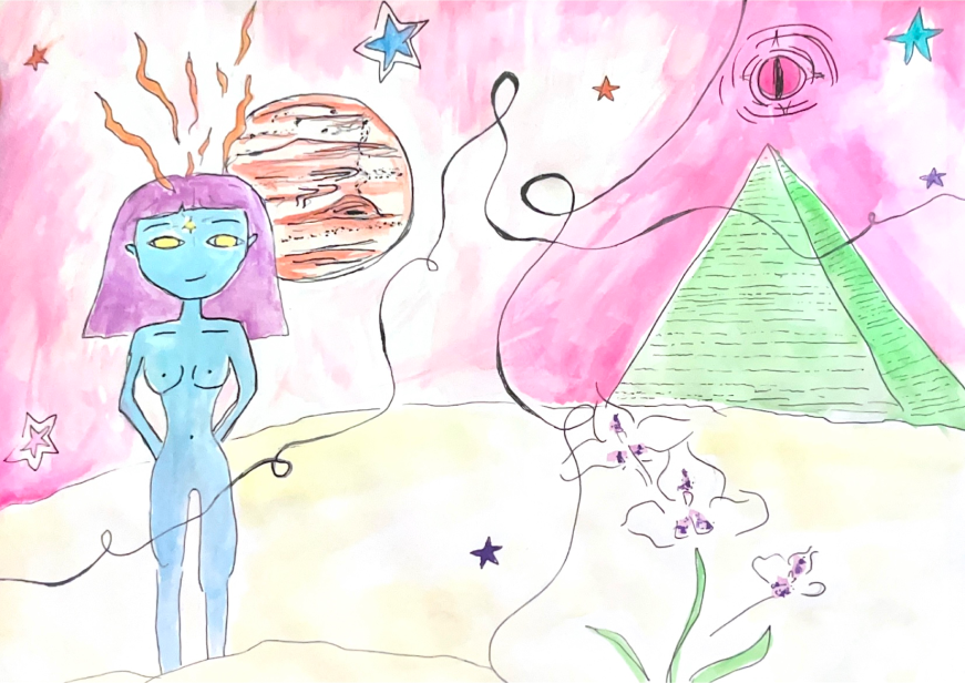 ava lang images from video, two people laying on field, colorful